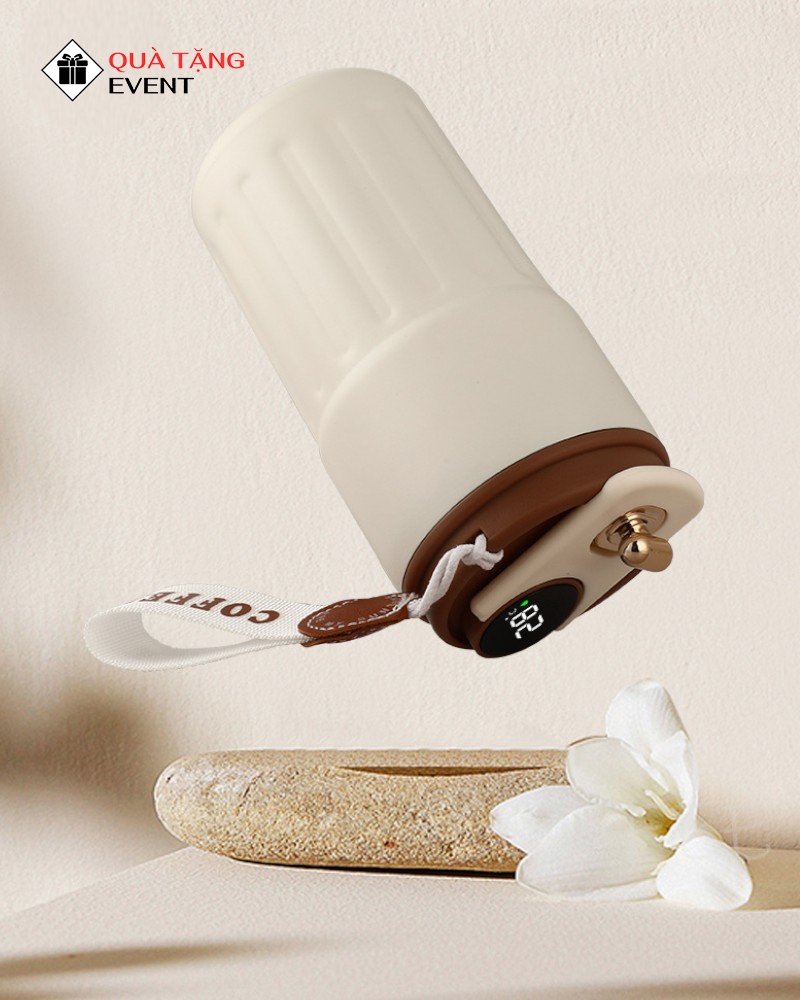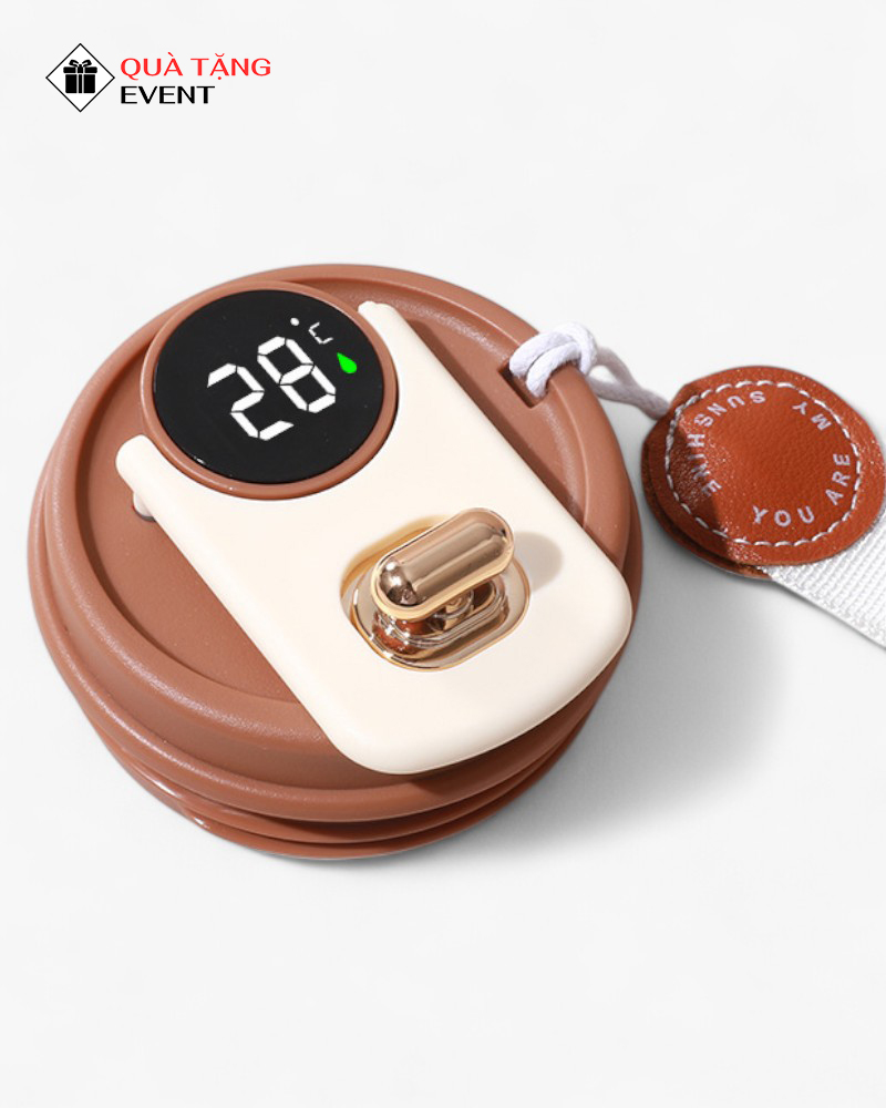 Nắp ly tích hợp màn hình LED cảm ứng hiển thị nhiệt độ, một tính năng thông minh và hữu ích. Chỉ cần một cú chạm, bạn có thể biết chính xác nhiệt độ của đồ uống bên trong. Chốt khóa an toàn mạ vàng không chỉ tăng tính thẩm mỹ mà còn đảm bảo nước không bị rò rỉ khi di chuyển. Mỗi chi tiết đều được xưởng gia công bình giữ nhiệt chăm chút kỹ lưỡng.